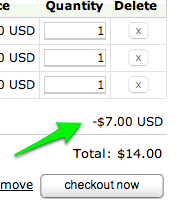 Then, you will see the discount noted there in your cart. Here’s an example of what that looks like.